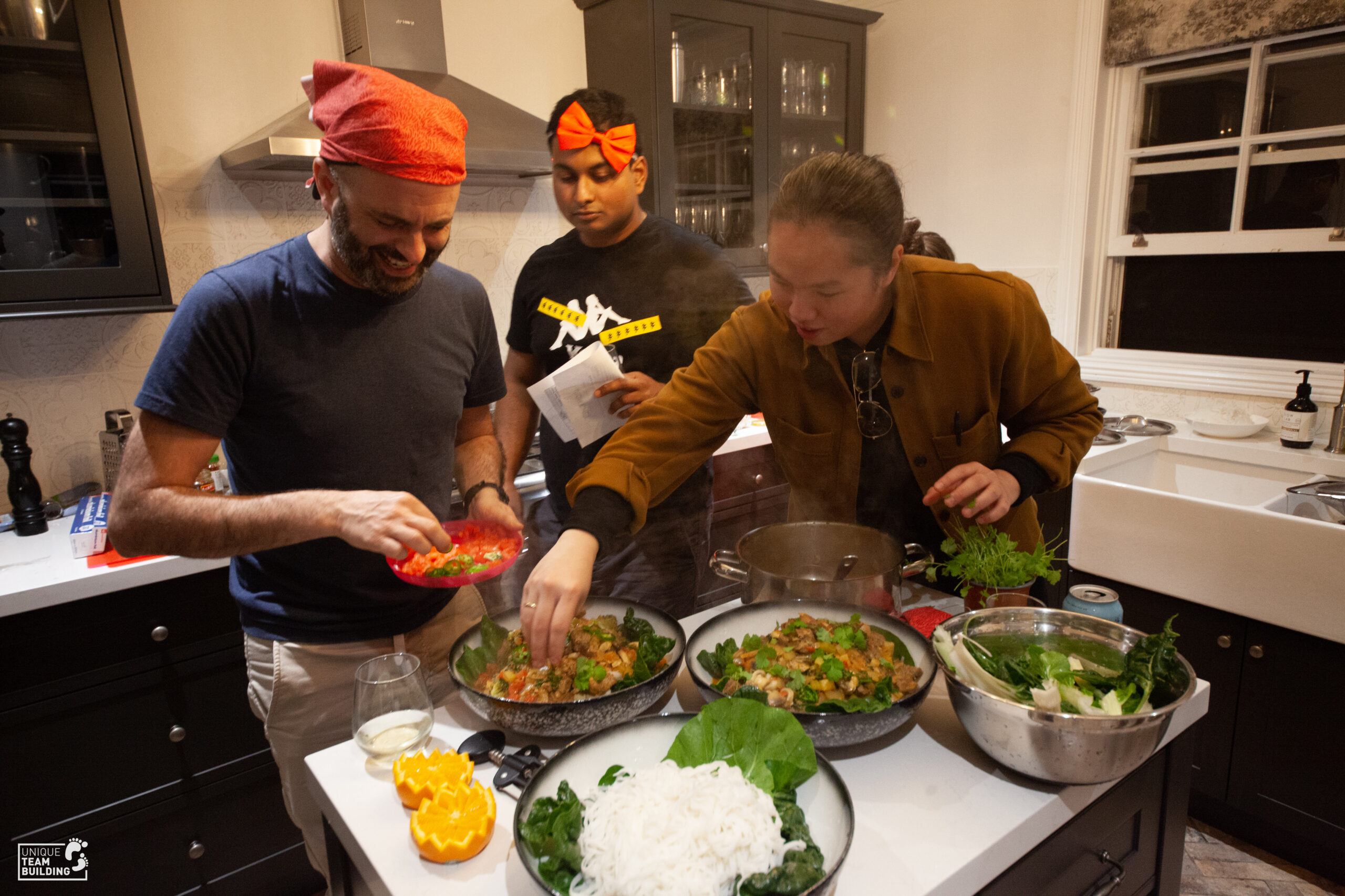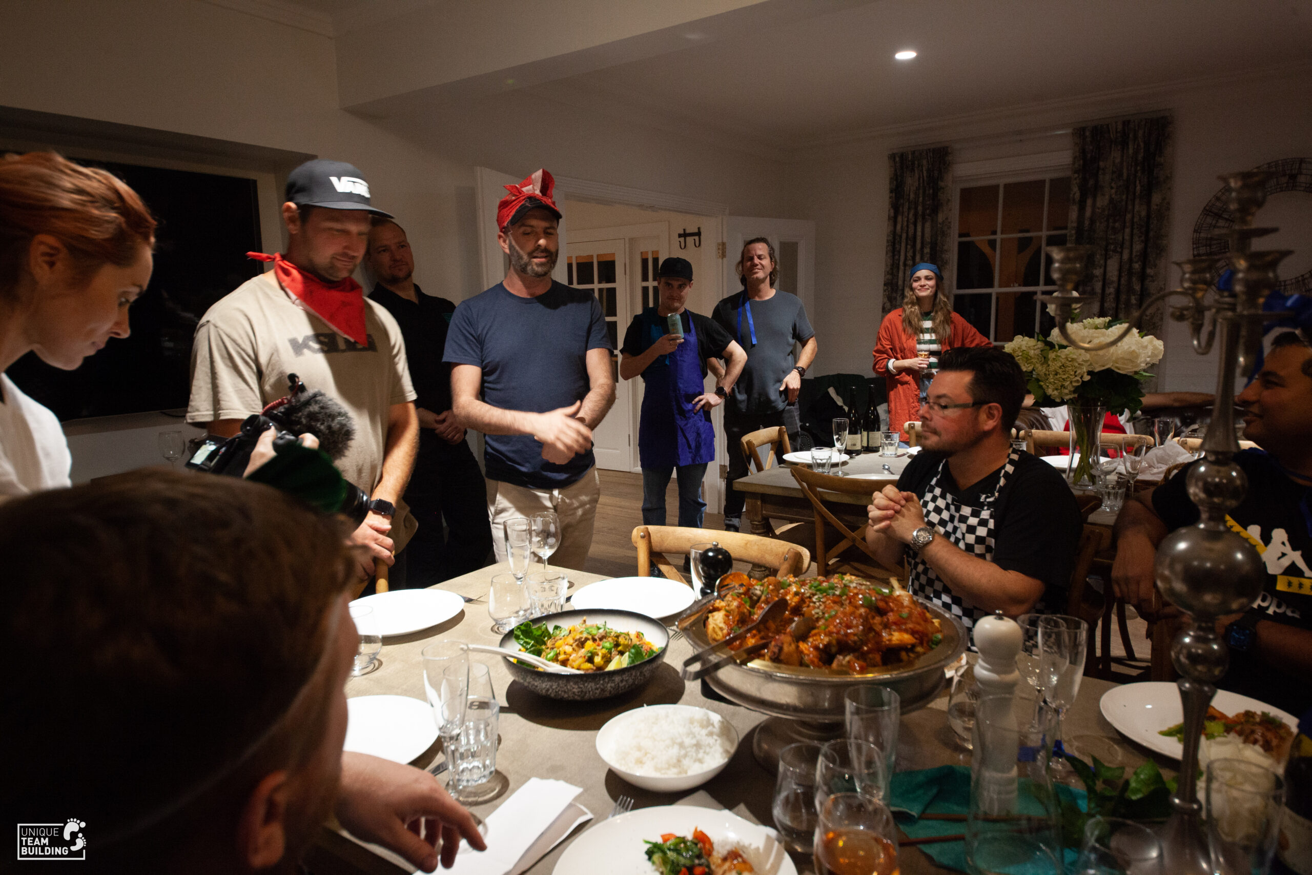 The Iron Chef challenge took place on the first evening comprised of each team creating and preparing a menu (entree, main & dessert) for the judges, before digging into the dishes themselves. Each team had access to a pantry and fridge full of fresh produce as well as their own kitchen. The challenge took place over 2 hours and dishes including bread and butter pudding hit the table for the judges and teams to enjoy.