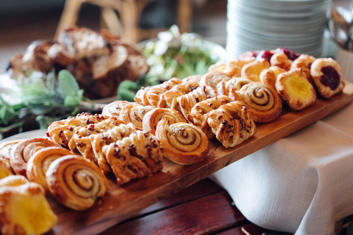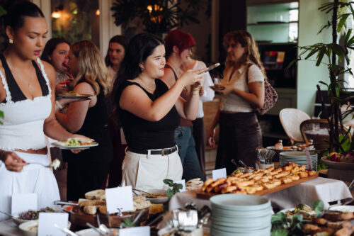 Guests arrived to barista coffees and fresh juices, enjoying highlights from the table including Chef Amber’s signature guacamole, bircher muesli, assorted pastries and fruit platters, roasted garlic hummus with flatbread, everything bagels with whipped cream cheese and house-smoked Ōra King salmon.